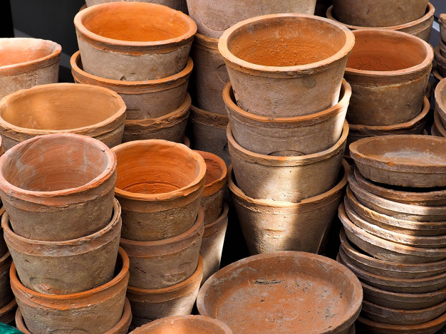 Cerâmica natural: A cerâmica é o material artificial mais antigo produzido pelo homem. Os vasos de cerâmica são muito comuns, eles retêm umidade e, ao longo do tempo, ganham uma crosta esverdeada, mas que pode ser limpa com escova de aço. Um ponto negativo é que tendem a ressecar no sol, por isso, a terra deve estar mantida sempre úmida. Porém, os vasos de cerâmica mantêm a terra fresca por mais tempo.